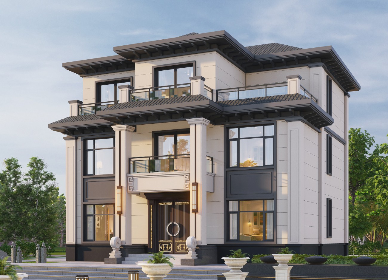 邻水18 三层新中式(13.62x13.6米)-【易设计】